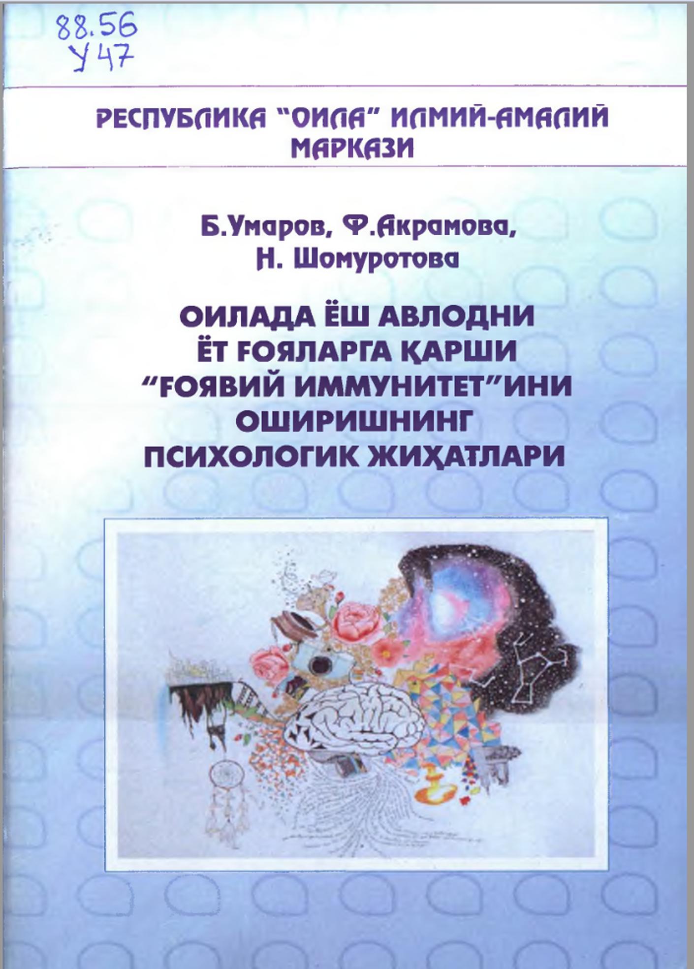 Read More Оилада ёш авлодни ёт ғояларга қарши "Ғоявий иммунитет"ини оширишнинг психологик жиҳатлари : илмий-услубий қўлланма