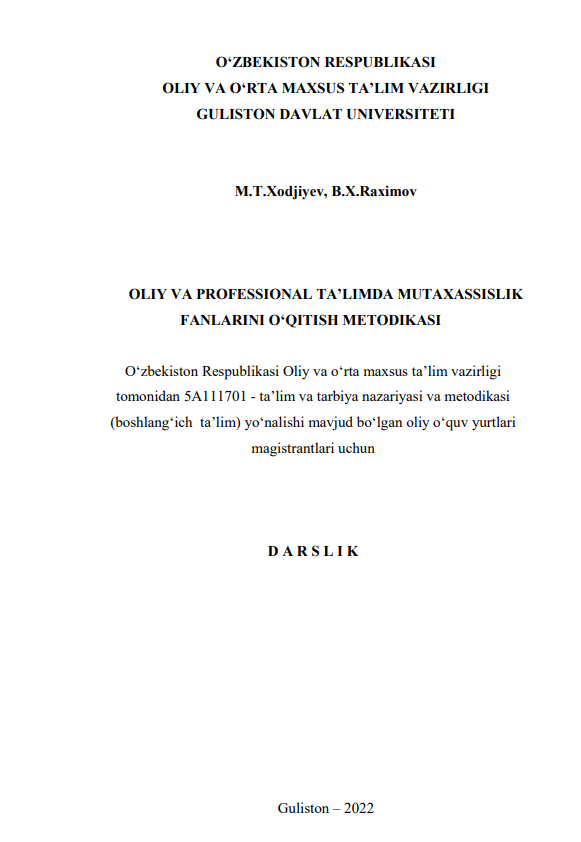 Oliy va professional ta'limda mutaxassislik fanlarini o'qitish metodikasi
