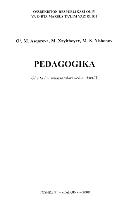 Pedagogika. Pedagogika nazariyasi va tarixi 1 qism. Pedagogika nazariyasi.